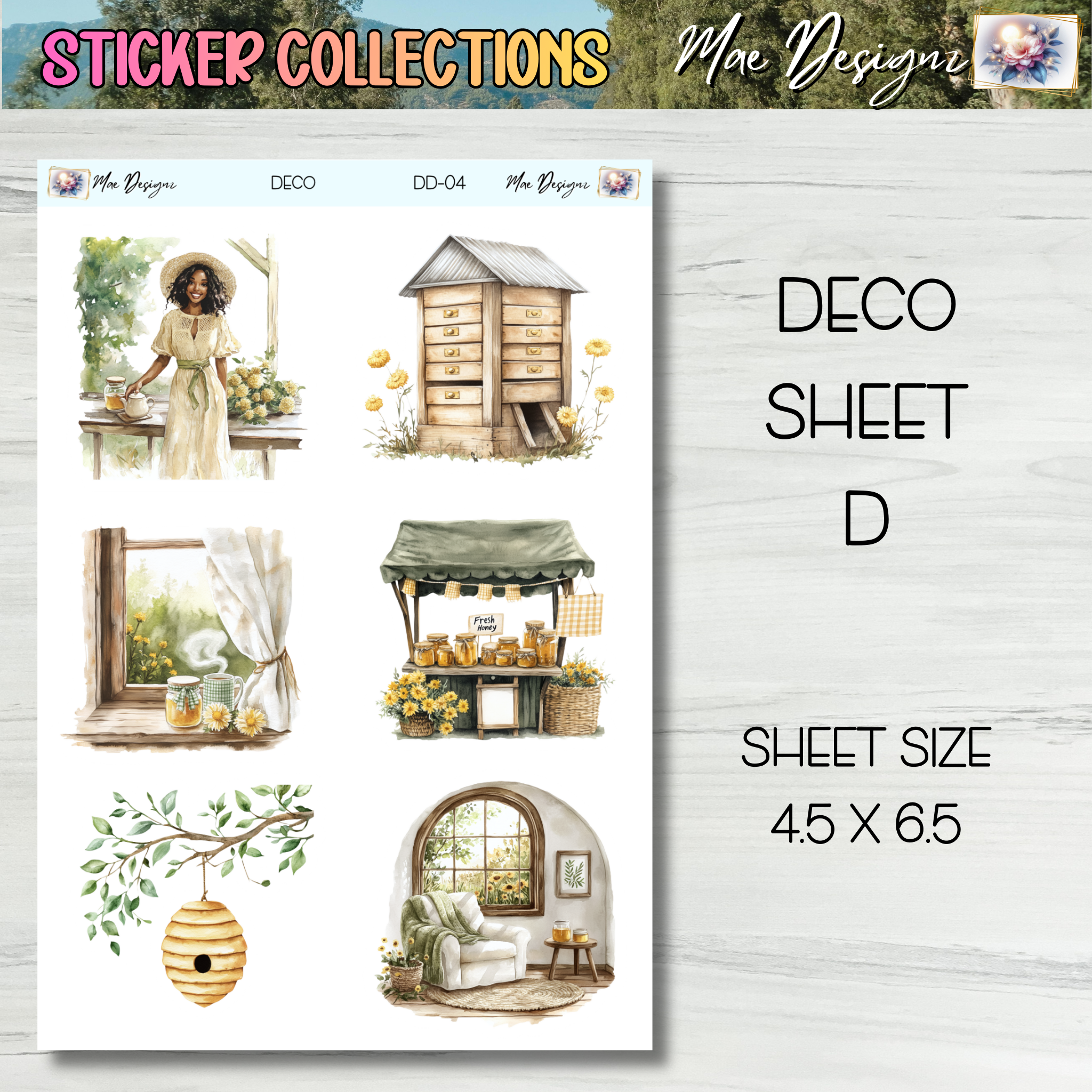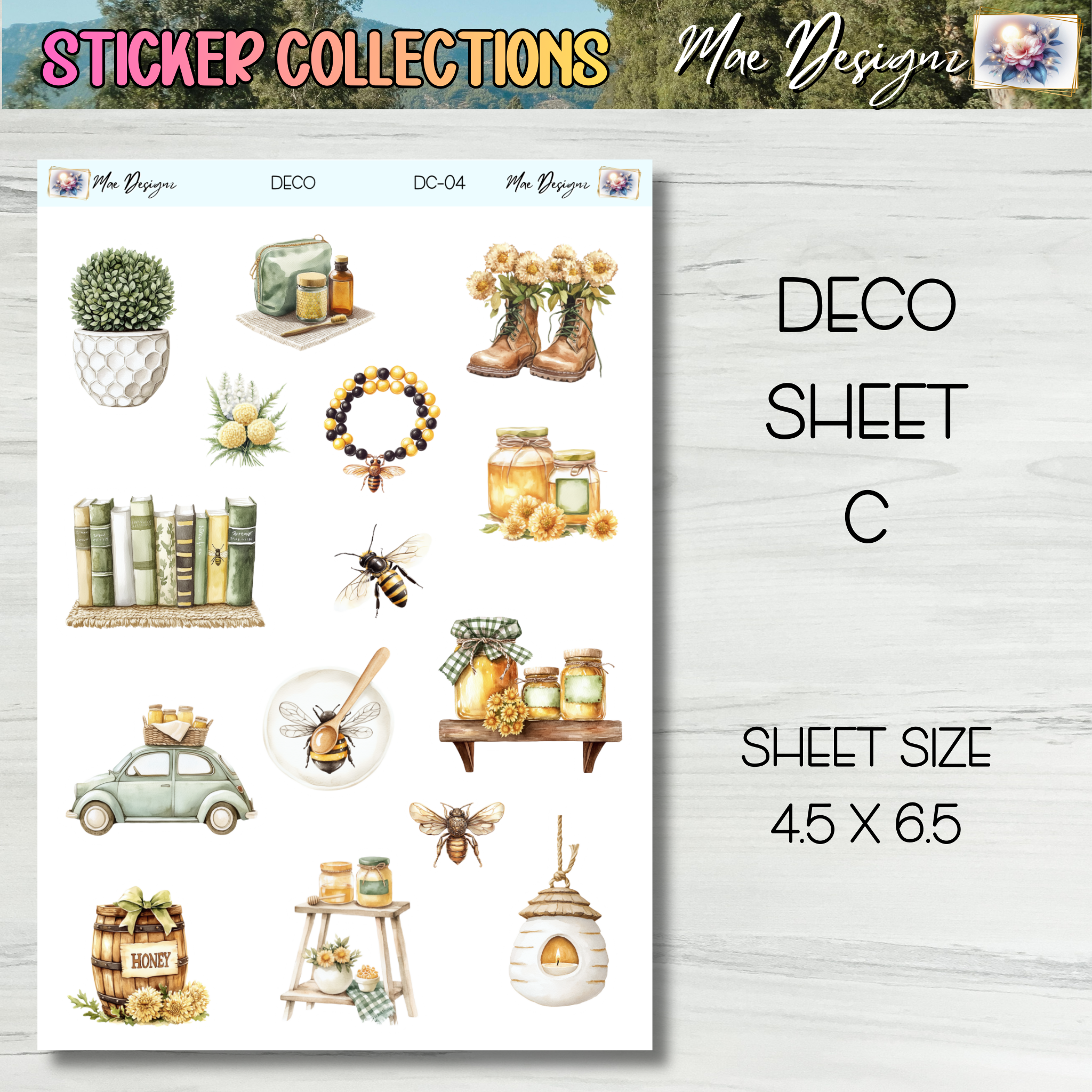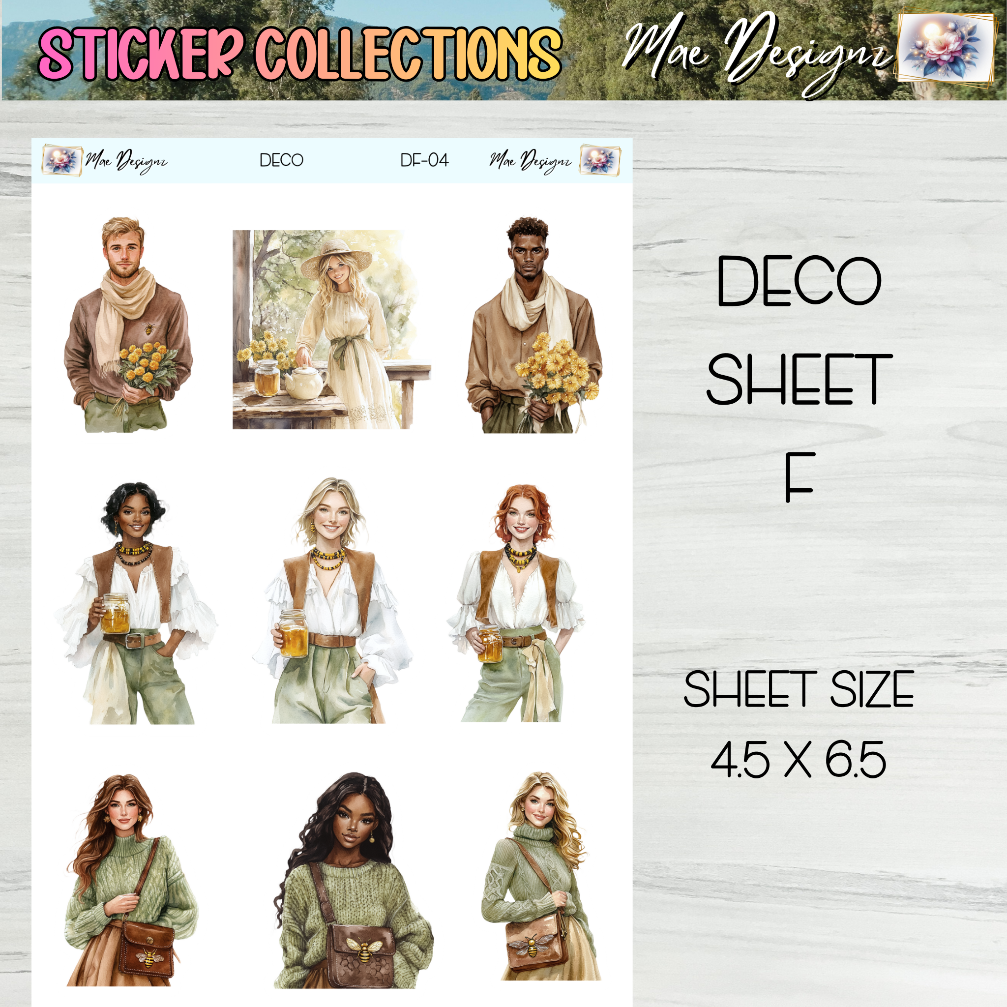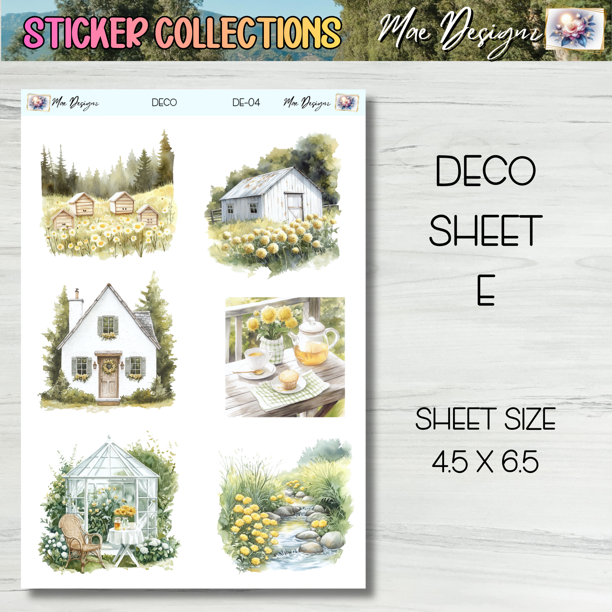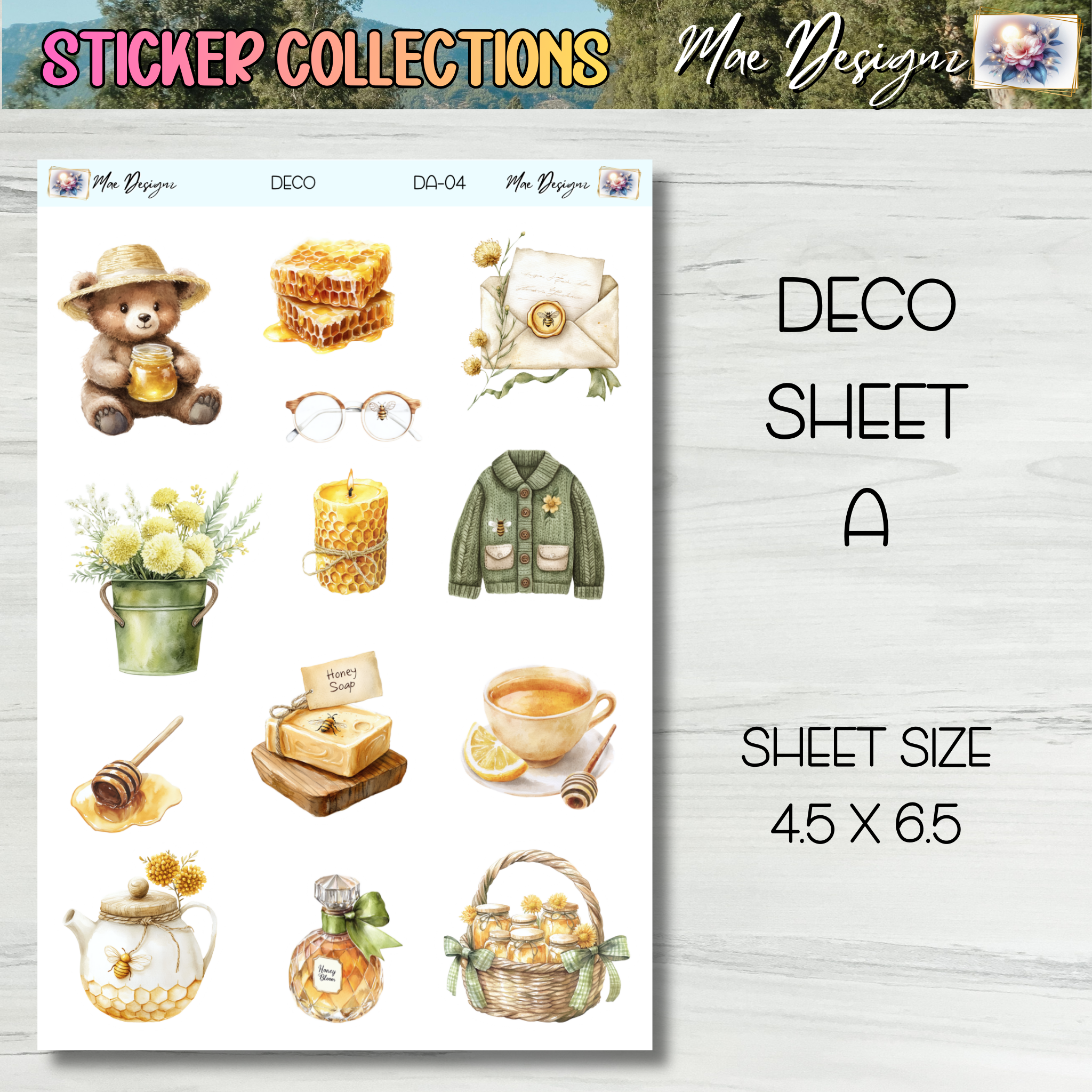 Sheet sizes are 4.5 x 6.5. There are several options to choose from. All sheets are printed on glossy sticker paper or clear vinyl sticker paper and are universally sized for small or standard planners, notebooks or journals.