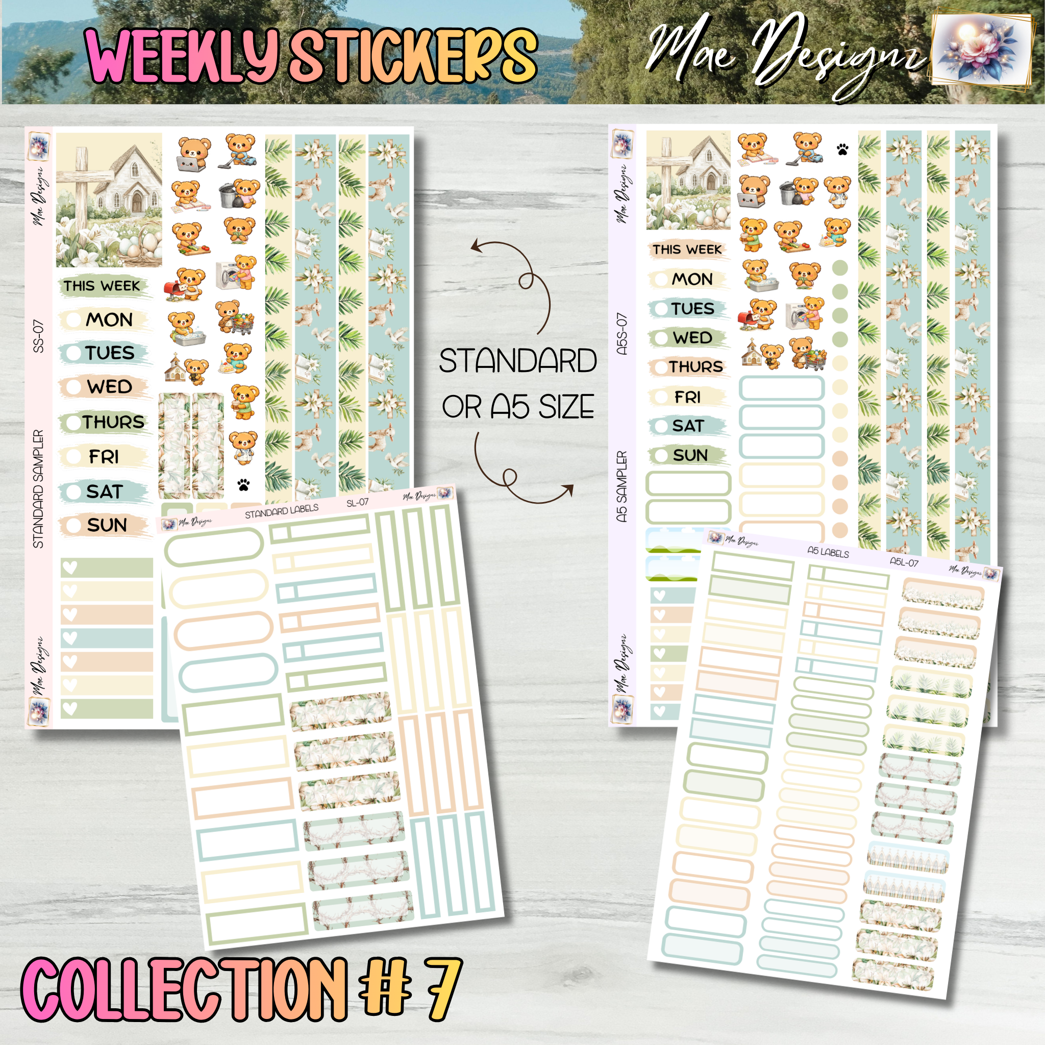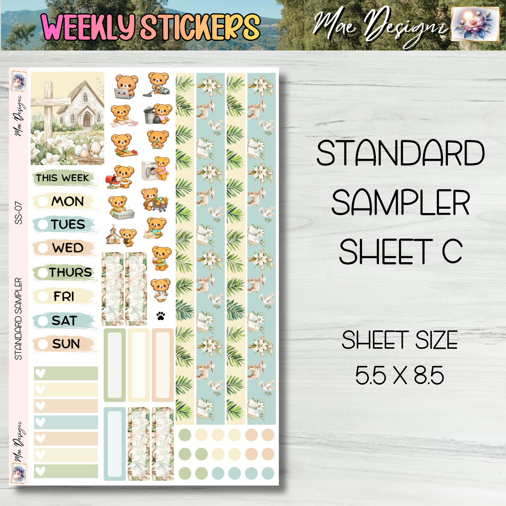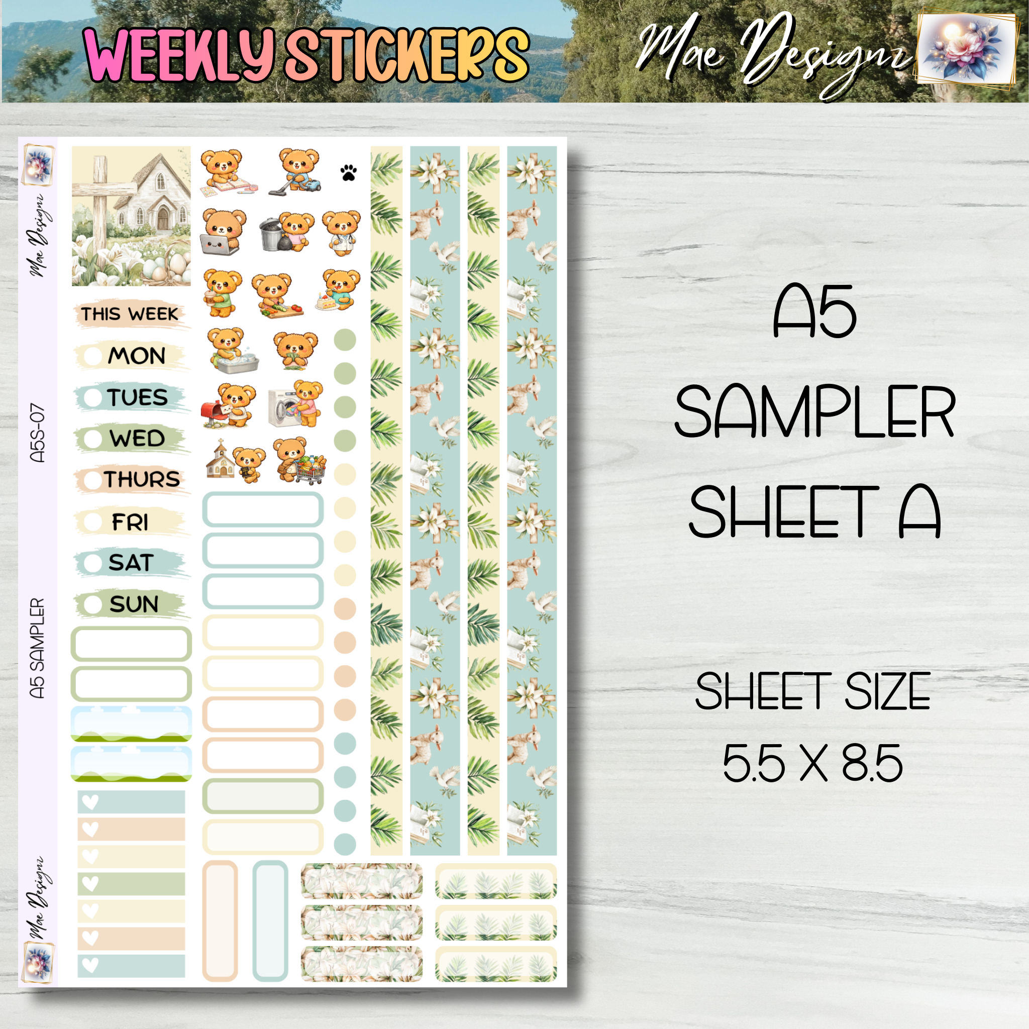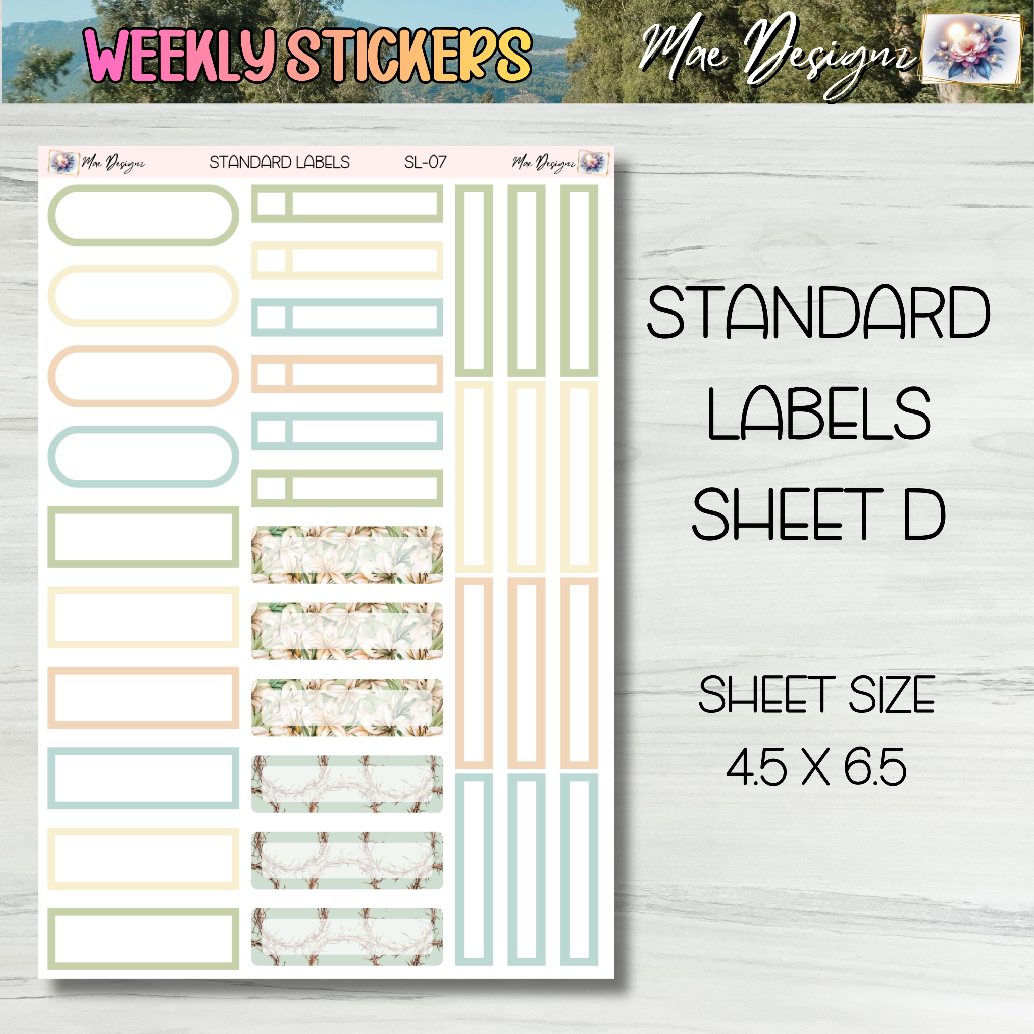 Sampler sheet sizes are 5.5 x 8.5 and the labels are 3.25 x 6.5. Two sizes to choose from. These sticker sheets come printed on removable matte paper and stickers work wonderfully for A5 or standard size planners.
