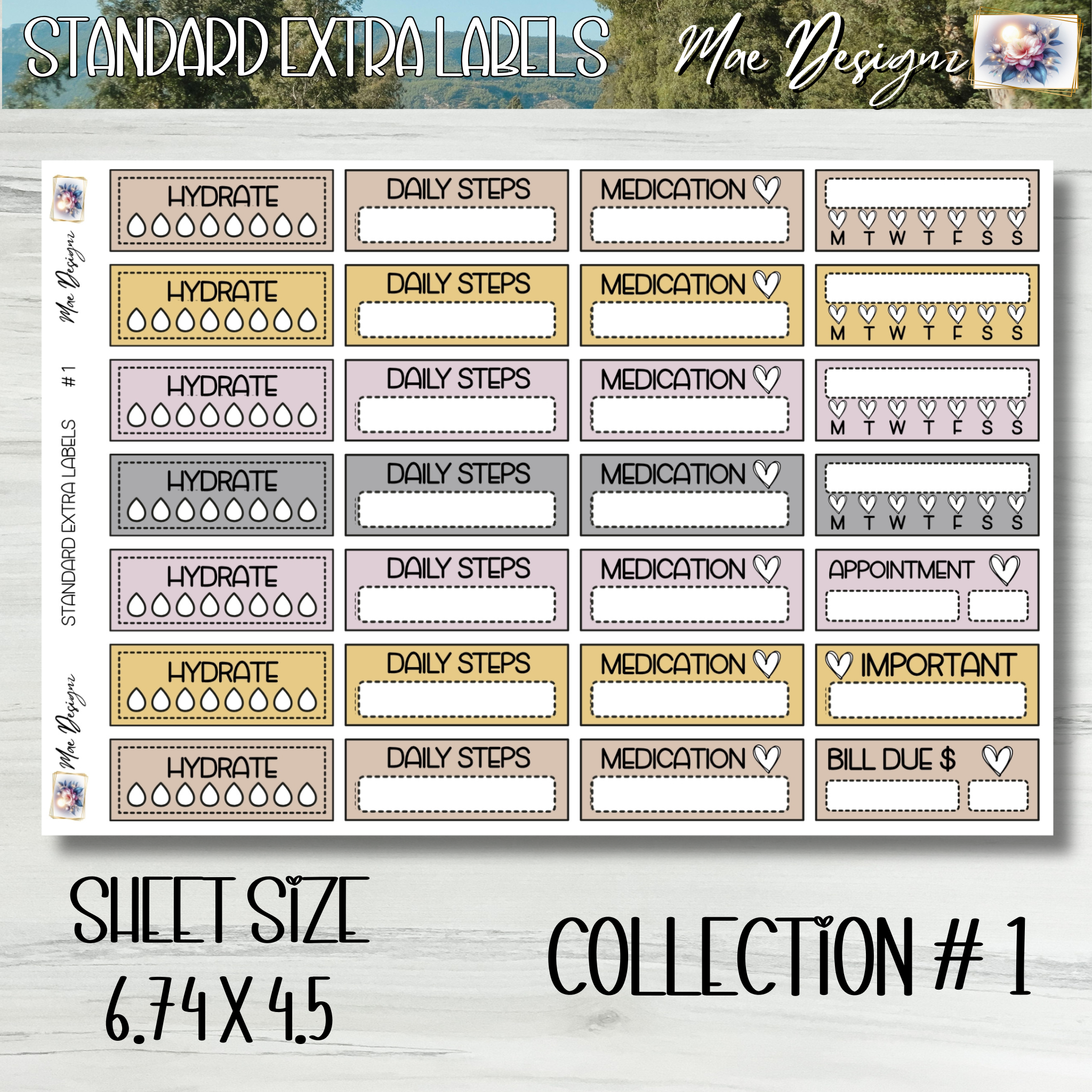 Sheet size is 6.74 x 4.5. This sticker sheet comes printed on removable matte paper and stickers work wonderfully for standard planner sizes.
